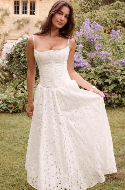 Elevate your elegance with the House of CB Francine Maxi Skirt and Lorina Corset in white. A timeless duo that combines sophistication and sculpted perfection for an unforgettable look.
